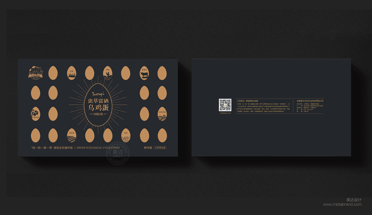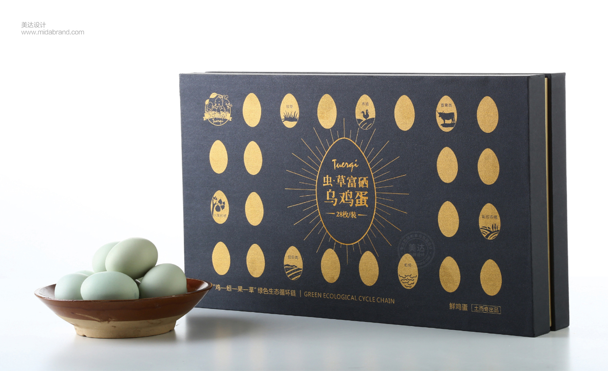 美達(dá)設(shè)計(jì)為土而奇農(nóng)場(chǎng)設(shè)計(jì)的包裝禮盒設(shè)計(jì)深受市場(chǎng)好評(píng),土而奇“蟲·草”蛋(富硒烏雞蛋)源于世界稀有的古老土雞品種“舊院黑雞”,在“雞-蚓-果-草”綠色生態(tài)循環(huán)鏈農(nóng)業(yè)模式下全程低密度生態(tài)放養(yǎng)或高福利養(yǎng)殖條件下所產(chǎn)的純天然的富硒雞蛋,母雞以蚯蚓、昆蟲、青草、五谷雜糧等天然食材為食,雞蛋天然富硒,具有滋補(bǔ)、美容、延緩細(xì)胞衰老、提高人體免疫力等特殊保健功效。