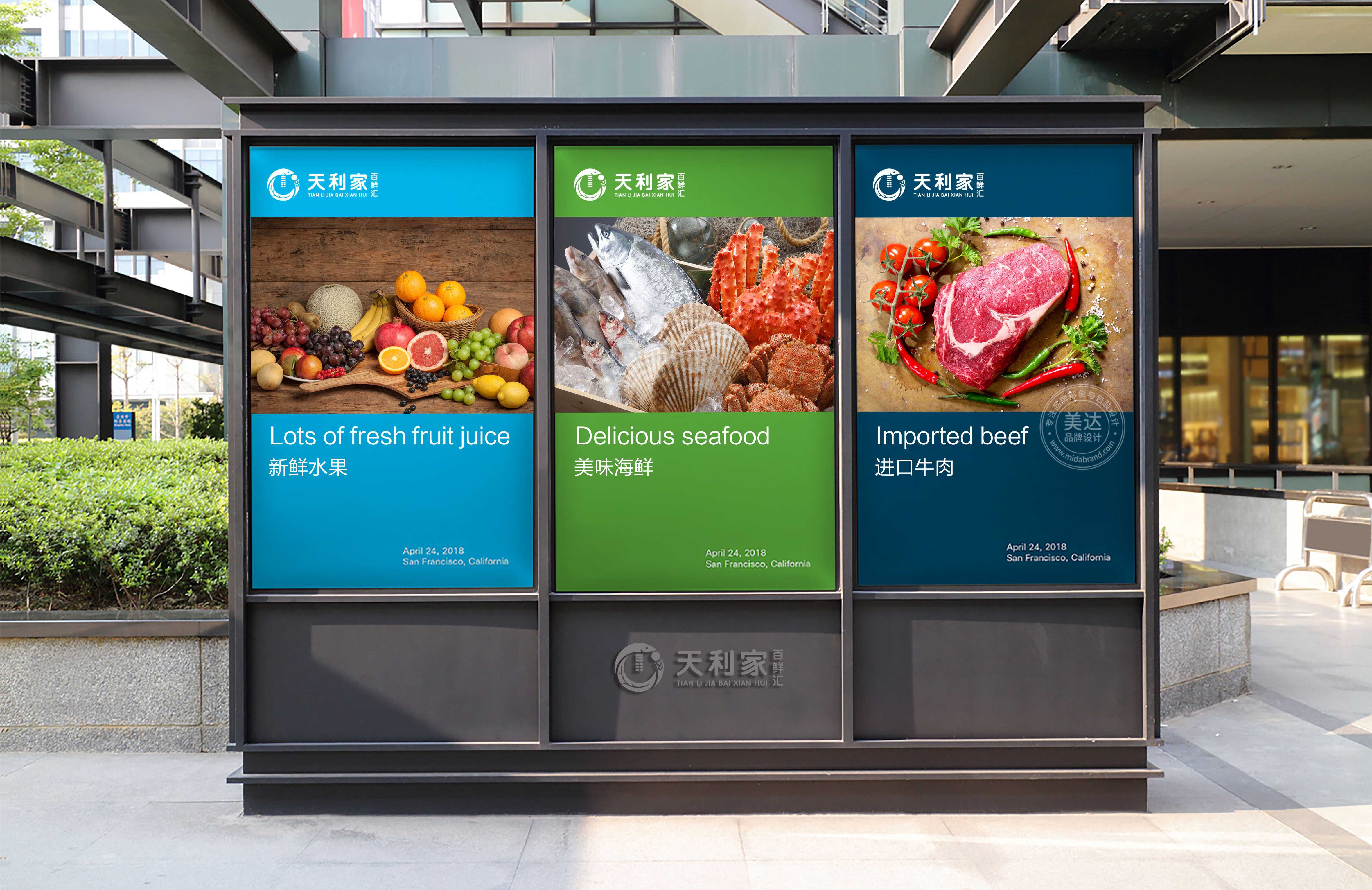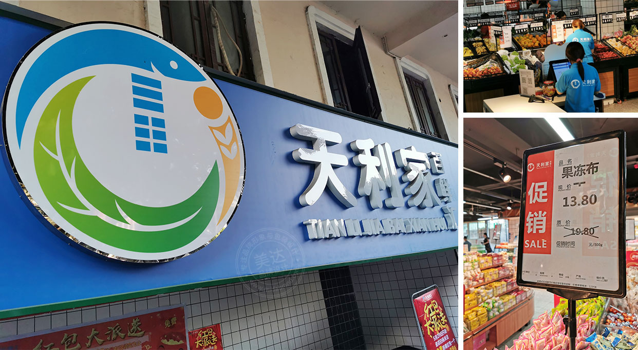 美達品牌設計為天利家百鮮匯量身打造了專屬的標志形象以及VI系統設計,目前已在成都開設4家連鎖店。