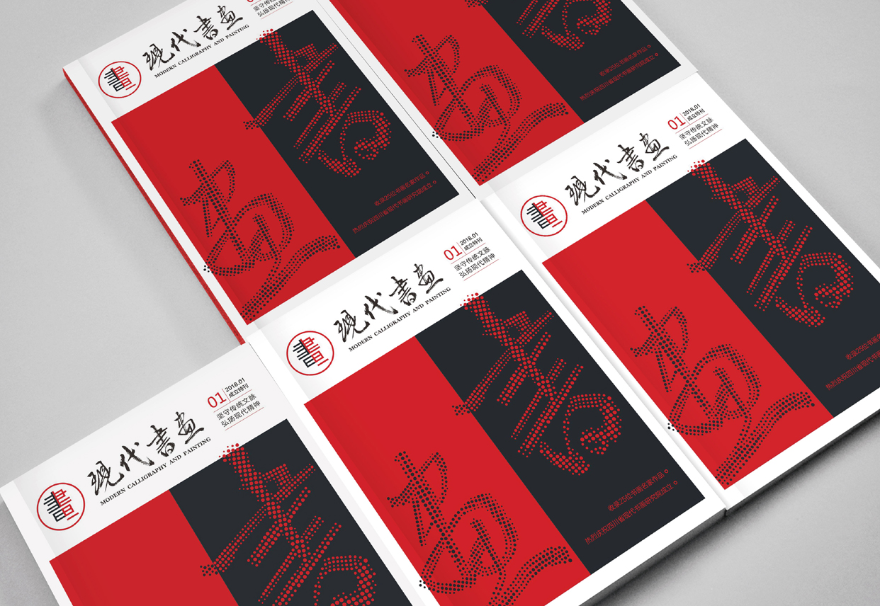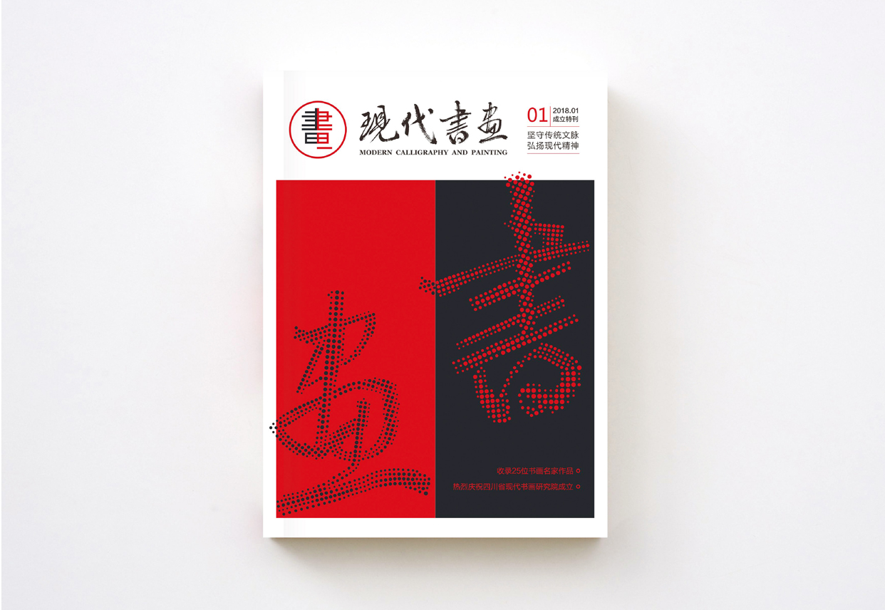 標志設計采用漢字“書、畫”為創作元素,將二字各取一半,共用筆畫,體現出中國書法和繪畫關系密切,相輔相成、源于一處。同時正好符合“書畫同源”的傳統創作理念。在設計的表現上采用現代的幾何線條組合成標志,而顏色則用傳統的中國紅。物料的延展設計中,用現代圓點的表達方式演繹傳統的書法字體,體現四川省現代書畫研究院的建院理念:堅守傳統文脈,弘揚現代精神。整套形象設計不但現代簡潔,同時也保留了傳統的文化精髓。